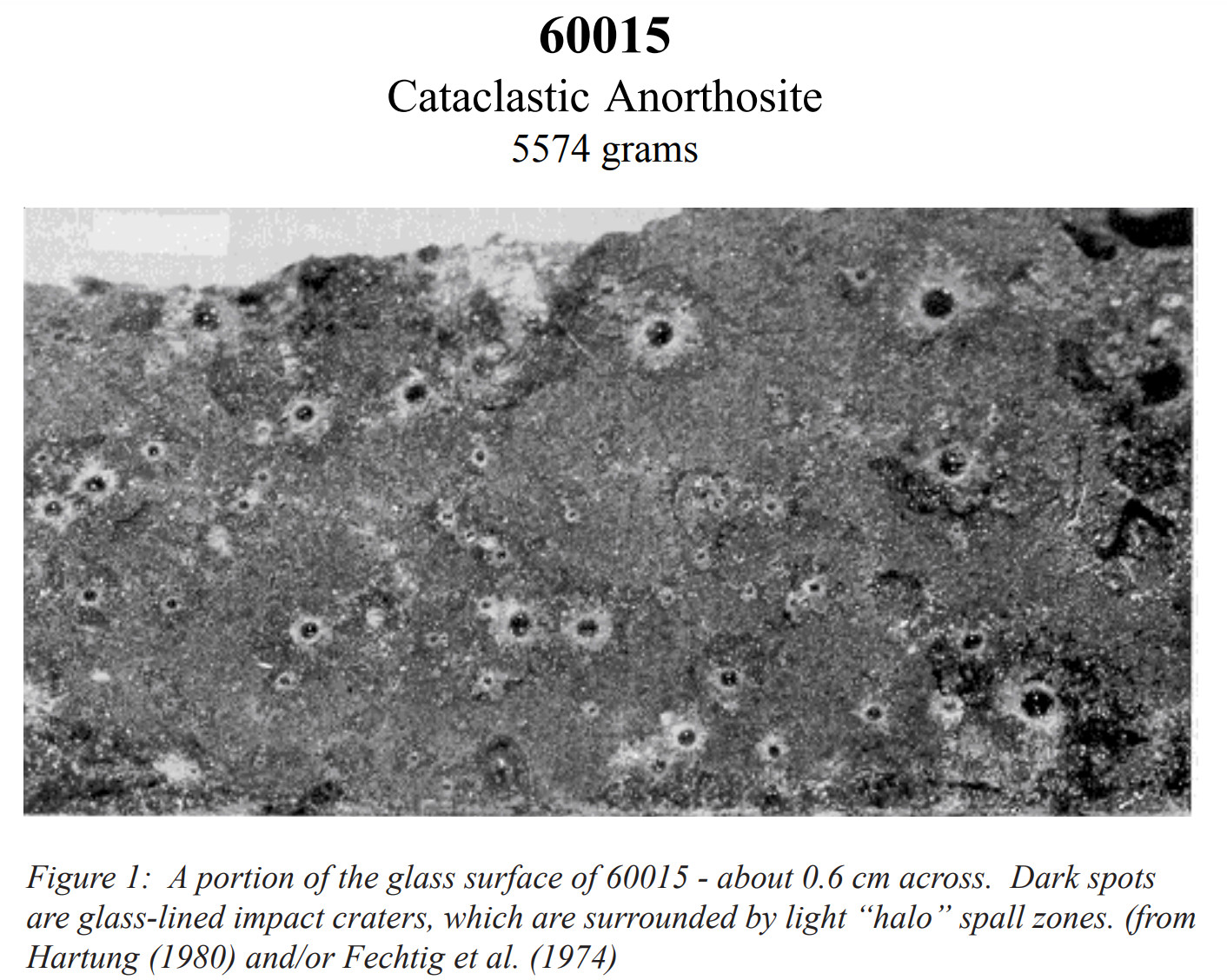 Вы обв, видимо, не совсем понимаете физику происхождения лунных камней. В точкее удара действительно до 5000 градусов – но это именно «в точке», ни обломки метеорита (если он достаточно крупный), ни обломки лунных пород не разогреваются таким ударом так, чтобы прогрелась до образования оплавленной корки ВСЯ поверхность. В отличие от метеоритов – сколь мне известно, у них нет двигателей ориентации, поэтому падение в атмосфере хаотическое – и нагреву и образованию корочки подвергается ВСЯ поверхность.