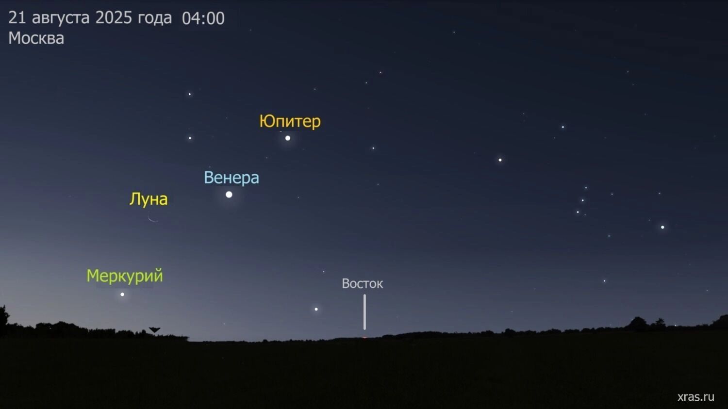 Цитата: Alecsvan от 18.08.2025 17:39:53Парад планет можно будет увидеть в ночь на вторник - сразу четыре небесных тела, Меркурий, Венера, Юпитер и Луна выстроятся в одну линию на небе северного полушария,