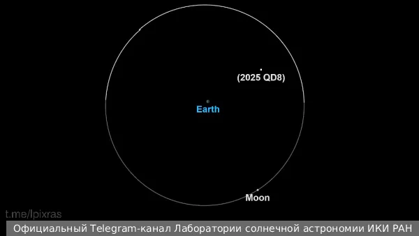 Астероид 2025 QD8 прошел на расстоянии около 200 тыс. км от Земли внутри лунной орбиты, сообщили в Лаборатории солнечной астрономии ИКИ РАН.