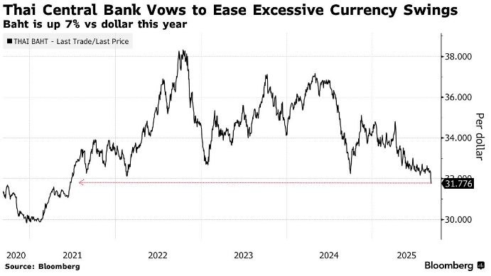 В понедельник бат показал самое значительное повышение с июня 2021 года, увеличившись на 7% с начала года. Этот скачок может негативно сказаться на экономике Таиланда, которая сильно зависит от внешней торговли, особенно в условиях 19-процентного тарифа США на экспорт. Кроме того, укрепление бата может отпугнуть иностранных туристов, являющихся важным источником доходов для страны.