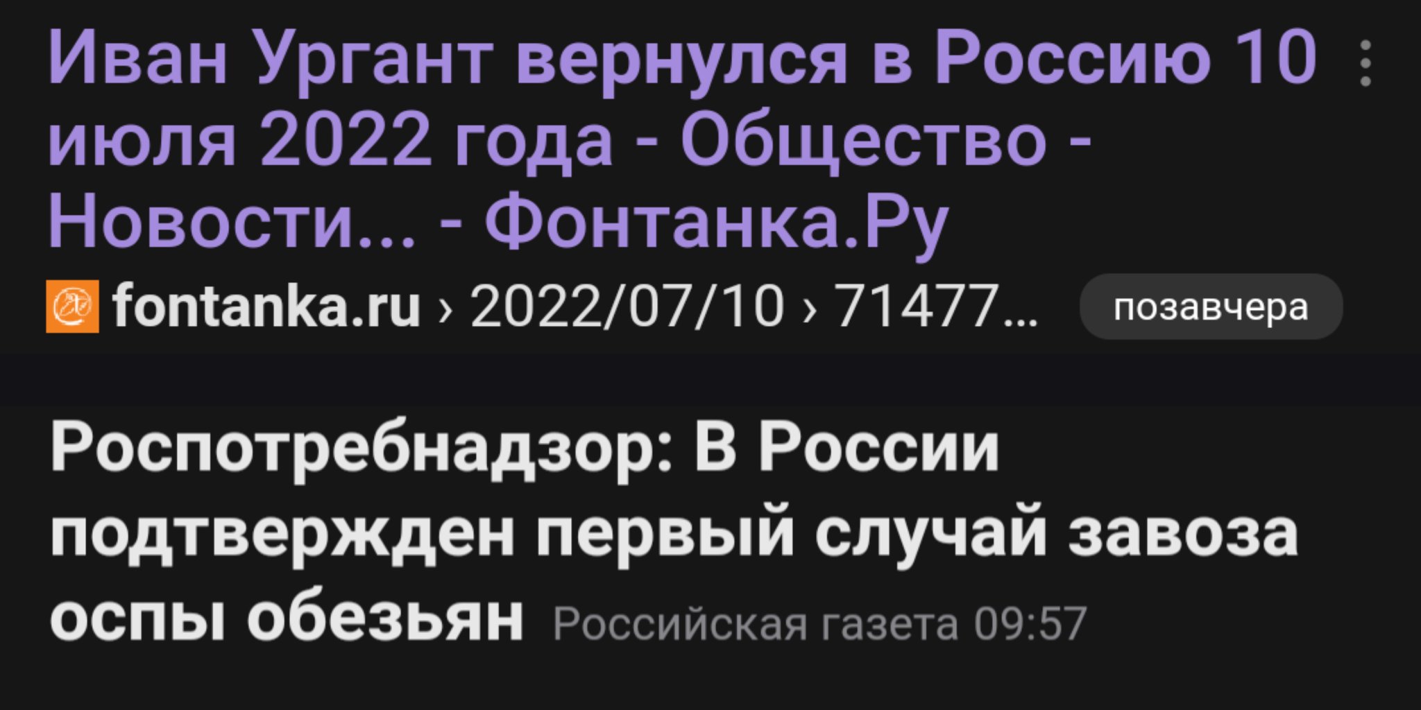 ЦитатаВозможность дальнейшего распространения оспы обезьян в России купирована - РоспотребнадзорКакой-то гей скатался