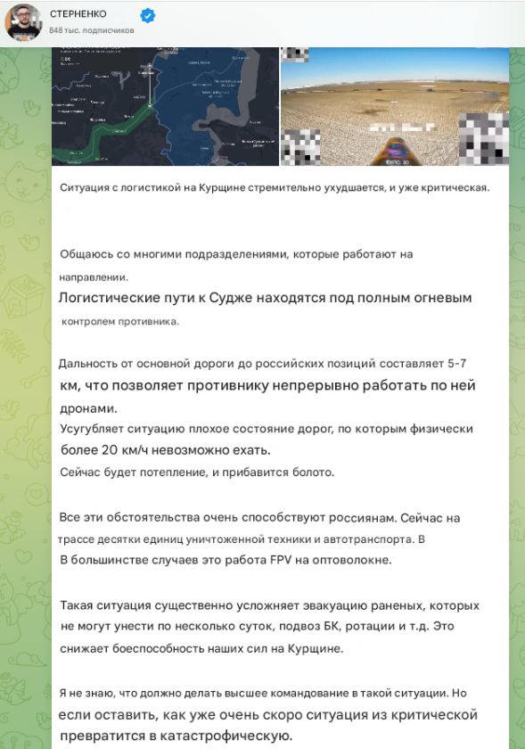 - в связи с постоянно растущей вероятностью мирных переговоров ВПР России поставило перед ГШ задачу ликвидировать укров в Курской территории. Под эту задачу группировка ВС РФ на Курщине получает самые совершенные системы РЭБ, в неограниченном количестве и БПЛА, и экипажи (значительная часть опытных подразделений БПЛА переброшена именно сюда), много стволов и боеприпасов (в том числе и корректируемых, высокоточных), идут люди и техника;