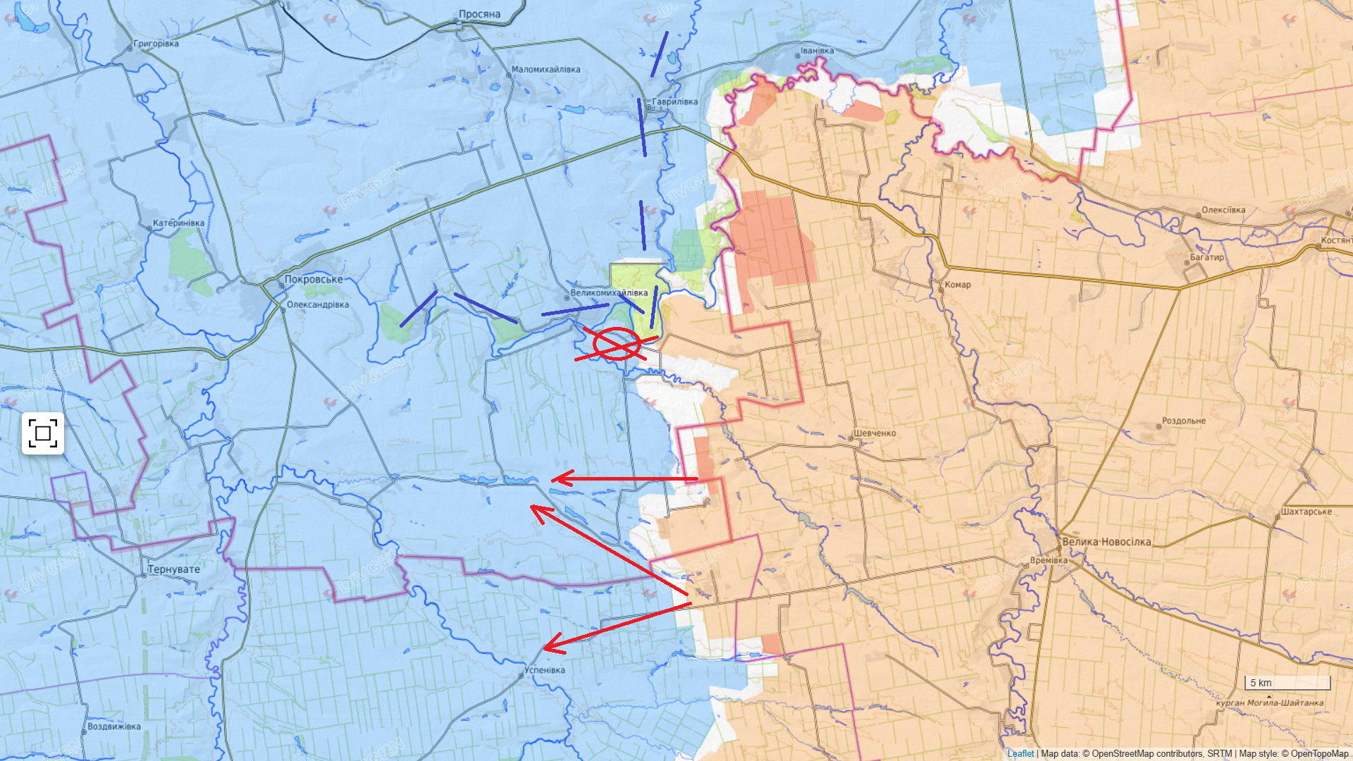 Ближайшая оперативная цель - это выход на рубеж Великомихайловка-Орестополь для установления огневого контроля над трассой Покровское-Гавриловка и дальнейшему выходу к этой трассе.