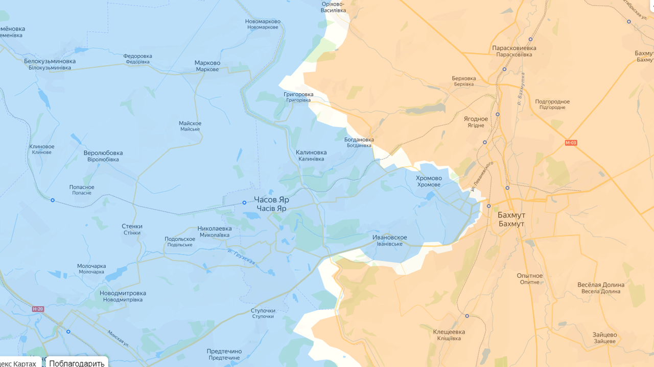 Цитата: Старый кэп I от 24.04.2023 21:50:33Ситуация в Бахмуте на 24 апреля 2023 года:По конфигурации фронта, оно правильно бы было уже говорить не сражение за Артёмовск,