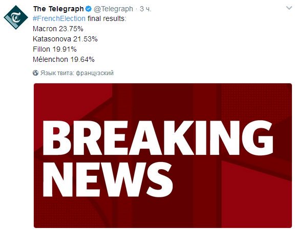 Идеальным был бы конституционный кризис и "третий тур", как во второй Франции. В предвыборную риторику что Фийона, что Ле Пен не верю - эти мальчики и девочки нам не друзья и друзьями не станут. КМК, достаточно было примеров, чтобы в этом убедиться - Джонсон, Габриэль, Могеррини и прочие Трампы. Так что, чем больше там будет бардака, тем лучше для нас.