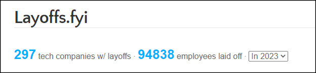 Веб-сайт для отслеживания данных, который подсчитывает увольнения в мировой технологической отрасли. По данным ”к вашему сведению", с 2023 года по настоящее время общее число увольнений всемирно известных технологических компаний, зарегистрированных ИТ, достигло по меньшей мере 94 838. Американская “Wall Street Journal” ранее проанализировала, что масштабные увольнения являются не только частью усилий технологических компаний США по защите прибыли, но и, похоже, означают, что эпоха "роста любой ценой" в технологической отрасли подходит к концу.