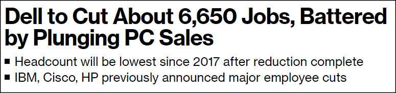 Скриншот отчета BloombergСО-главный операционный директор Dell Джефф·Кларк (Jeff Clarke) заявил в памятке для сотрудников, затронутых “неопределенным будущим”, что рыночные условия Dell продолжают ухудшаться. Меры компании по сокращению расходов, такие как приостановка набора персонала, ограничение поездок и сокращение расходов на внешние услуги в ответ на экономический спад, больше не являются “достаточными”.