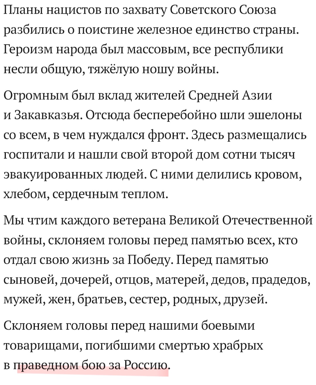 4. Речь Президента - каждое слово отточено, ни одного лишнего или позволяющее двусмысленное толкование. Победа - общая - республик и союзников. И республики и союзники перечислены. Остальные - ну, выбор делали сами, переиграть ничего уже не получится;