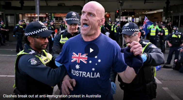Цитата: Зимогор от 01.09.2025 10:43:35Насилие в воскресенье произошло во время многотысячных митингов в крупных городах Австралии, включая Сидней, Перт, Канберру и Брисбен, участники которых требовали положить конец тому, что они называли «массовой иммиграцией».
