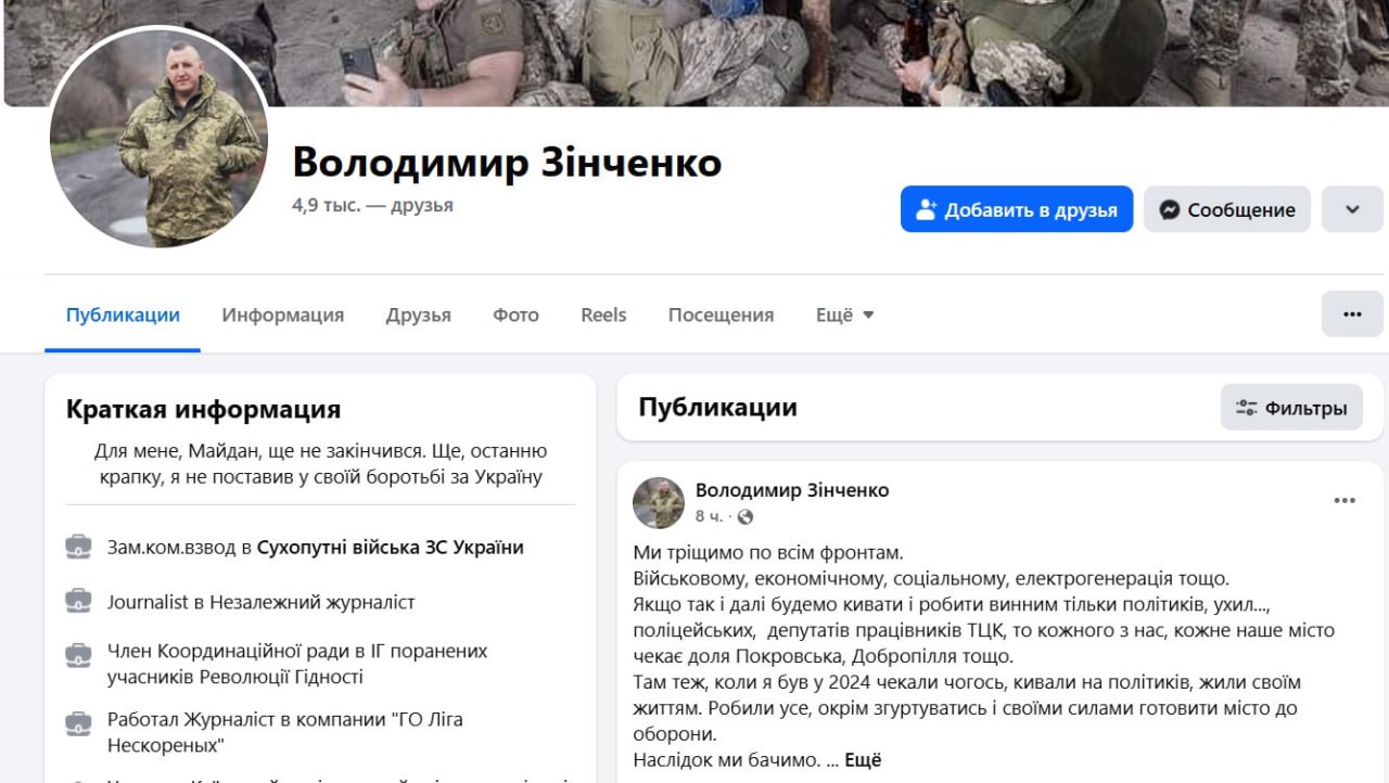 ▪️Бывшие активисты майдана винят население Украины в провалах на всех фронтах.Украинский известный журналист и активист майдана, ныне боевик ВСУ Владимир Зинченко признал, что Украина трещит по всем фронтам.