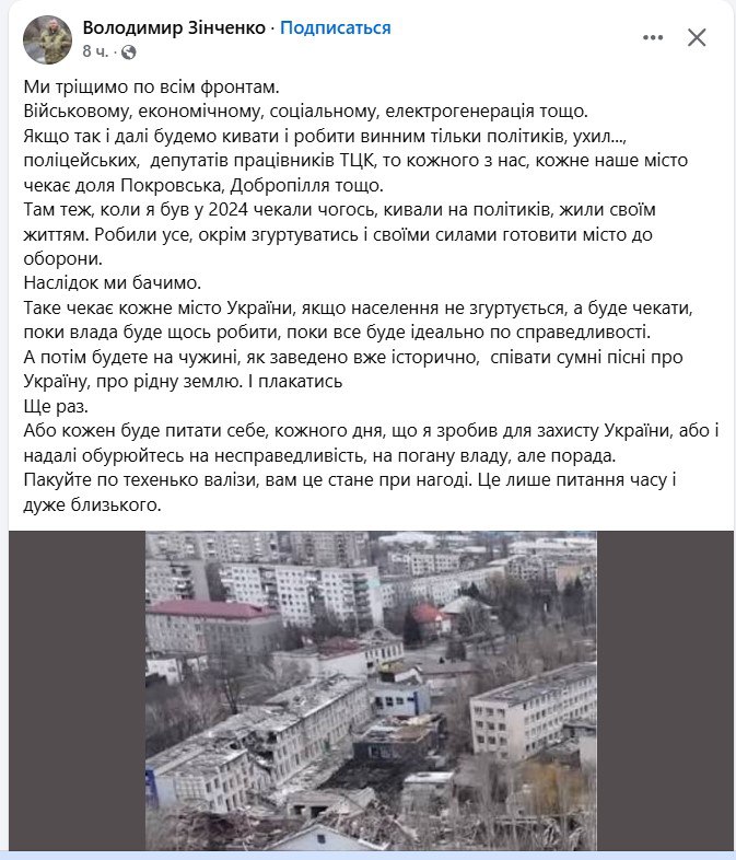 "Мы трещим по всем фронтам: Военном, экономическом, социальном, энергетическом и т.д."— заявил он на своей странице в соцсетях