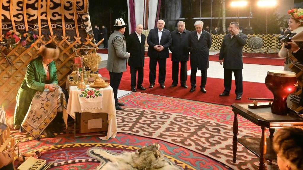 Путин, Лукашенко, Токаев, Рахмон и Жапаров в юрте перед официальным приемом в Кыргызстане